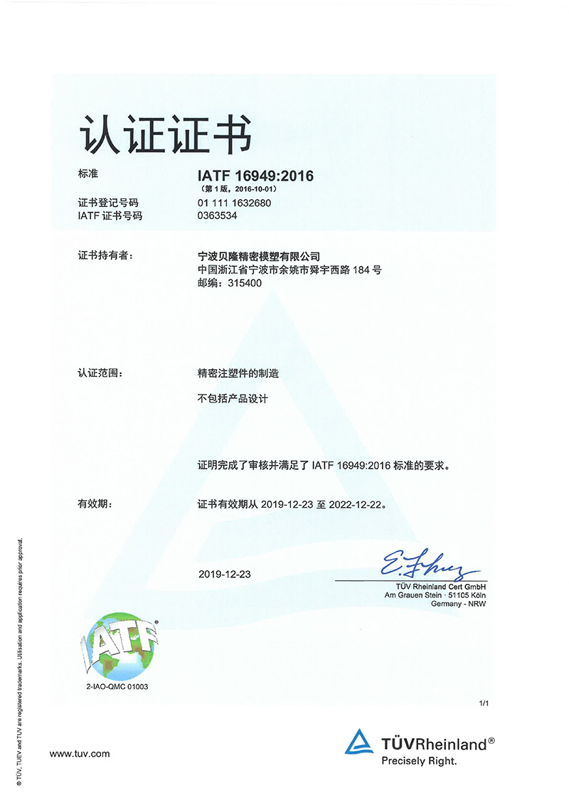 貝隆精密科技股份有限公司(股票代碼:301567)成立于2007年,坐落于中國(guó)模具之鄉(xiāng)、浙東名城浙江省余姚市,公司是專業(yè)從事精密注塑、沖壓、埋入成型、模具研發(fā)與制造的高新技術(shù)企業(yè)。被評(píng)定為國(guó)家制造業(yè)單項(xiàng)冠軍、國(guó)家級(jí)專精特新小巨人企業(yè)、國(guó)家知識(shí)產(chǎn)權(quán)優(yōu)勢(shì)企業(yè)。